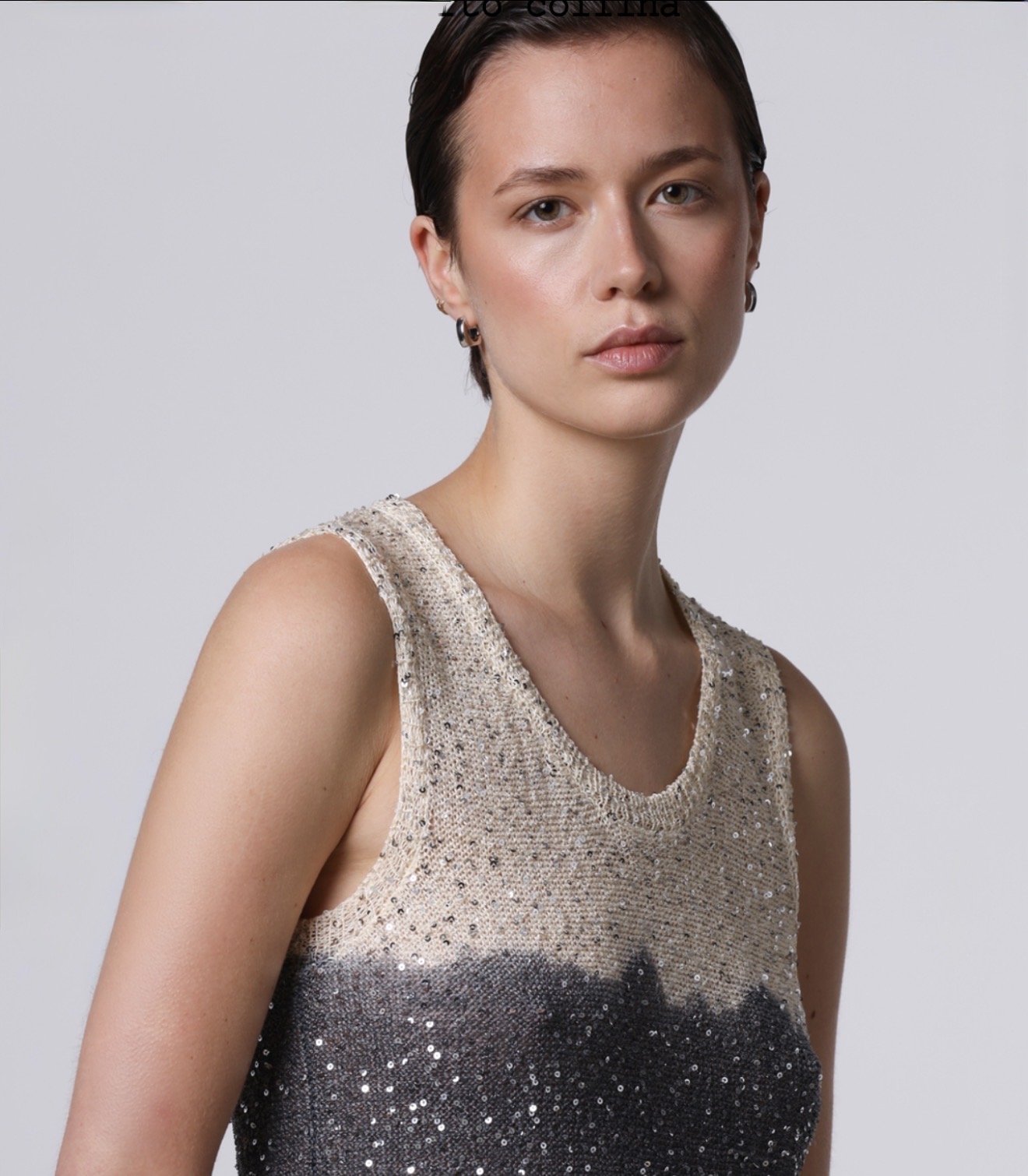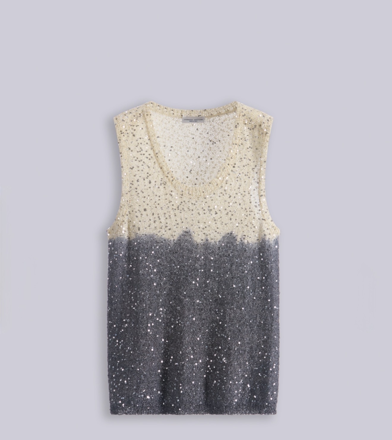 Camiseta sin mangas de corte recto hecha de algodón mezclado y adornada con lentejuelas.